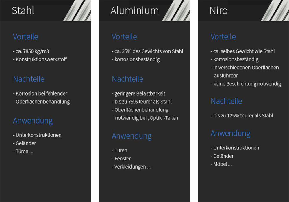 Produktpalette für Schlosserarbeiten bei Metallbau Tuschek in Gmunden, Oberösterreich